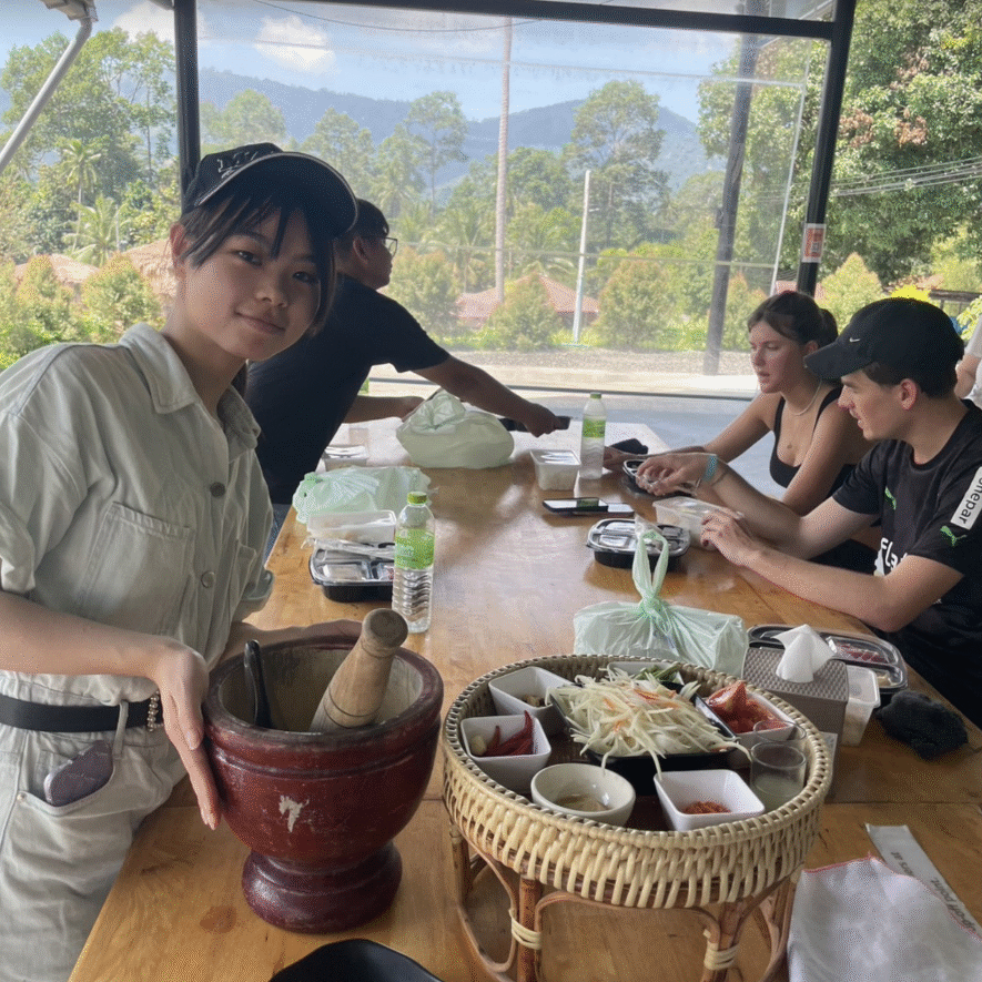 現場でお昼にはタイの伝統料理を作業を中断して食べ、そこで談笑したりする時間が私はこのプログラムに参加して一番印象に残っている点です! とにかくやってみる!!そこから何事もスタートし見える光景も変わってくると思います。